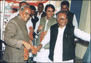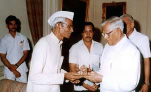 Sh. Mangat Ram Sharma Presenting Cheque of Rs.5,51,000 for Gujrat Earthquake Victims to Hon'ble Prime Minister of India