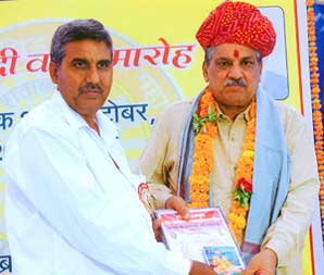 There after honour of guest was done by organisating samiti with safa, shawl & momento. Sh. Amar Chand Dandewa (Ajmer), Sh. Ram